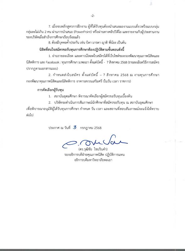ประกาศ เรื่อง รับสมัครทุนการศึกษา ฯ