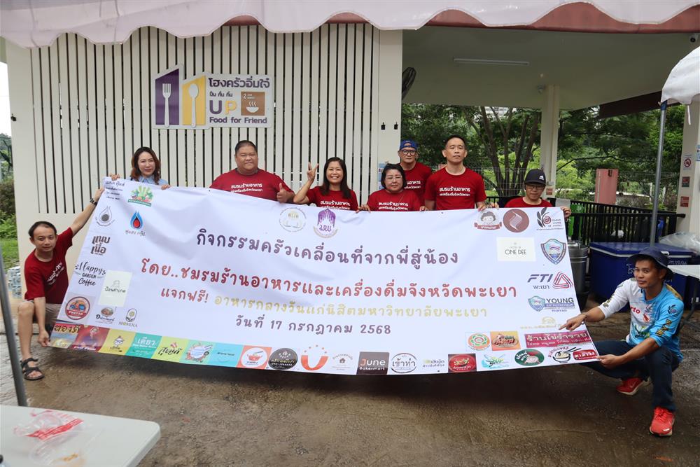 วันที่ 17 กรกฎาคม 2568 ชมรมร้านอาหารและเครื่องดื่มจังหวัดพะเยา ร่วมกับกองพัฒนาคุณภาพนิสิตและนิสิตพิการ ศูนย์ให้คำปรึกษาและสร้างเสริมสุขภาวะ มหาวิทยาลัยพะเยา จัดโครงการ “โรงครัวจากพี่สู่น้อง น้องอิ่มท้องพี่สุขใจ ครั้งที่ 1” ณ โรงครัวอิ่มใจ๋ ปั๋น กั๋น กิ๋น อาคารสวงวนเสริมศรี มหาวิทยาลัยพะเยา ซึ่งมีผู้ประกอบการชมรมฯ ส่วนใหญ่เป็นศิษย์เก่ามหาวิทยาลัยนเรศวร วิทยาเขตพะเยา และ ศิษย์เก่ามหาวิทยาลัยพะเยา เข้ามาประกอบ-ปรุง อาหารและเครื่องดื่มที่ถูกสุขลักษณะ เพื่อแจกจ่ายแก่นิสิตมหาวิทยาลัยพะเยา โดยตั้งเป้าไว้ที่ 1,000 กล่อง (หรือจนกว่าของจะหมด) เป็นการสร้างขวัญและกำลังใจให้แก่นิสิต เนื่องในวันสถาปนามหาวิทยาลัยพะเยาครบรอบ 15 ปี