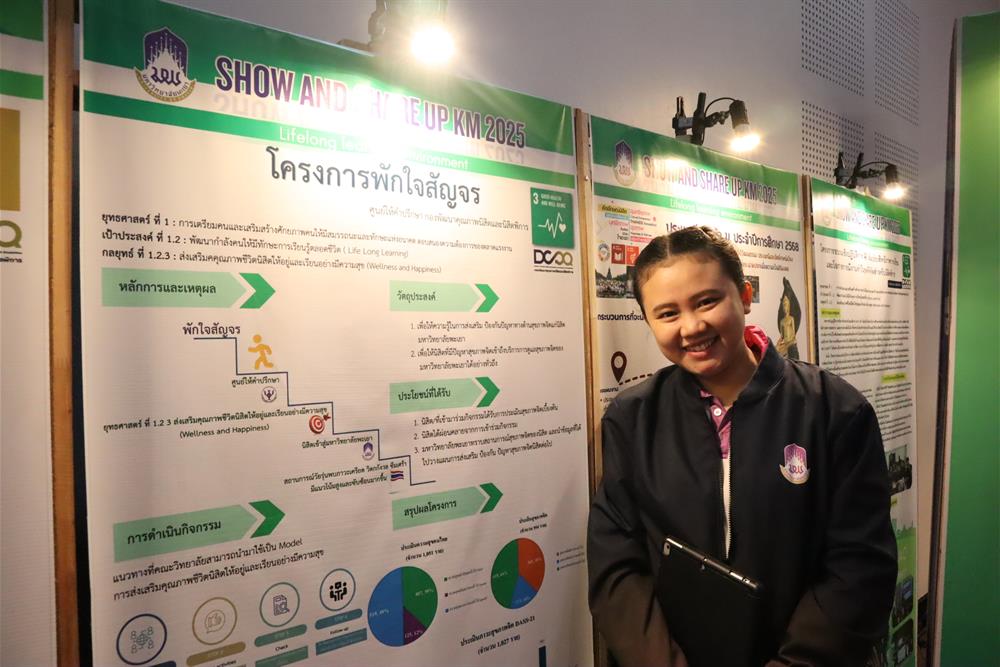 เมื่อวันพุธที่ 17 กันยายน 2568 กองพัฒนาคุณภาพนิสิตและนิสิตพิการ ร่วมส่งผลงานในโครงการ Show and Share UP KM 2025 เพื่อแสดงผลงานที่มีคุณลักษณะที่โดดเด่นและเป็นแบบอย่างที่ดีการบริหารงานให้บรรลุเป้าหมายตามประเด็นยุทธศาสตร์ของแผนยุทธศาสตร์การพัฒนามหาวิทยาลัยพะเยา